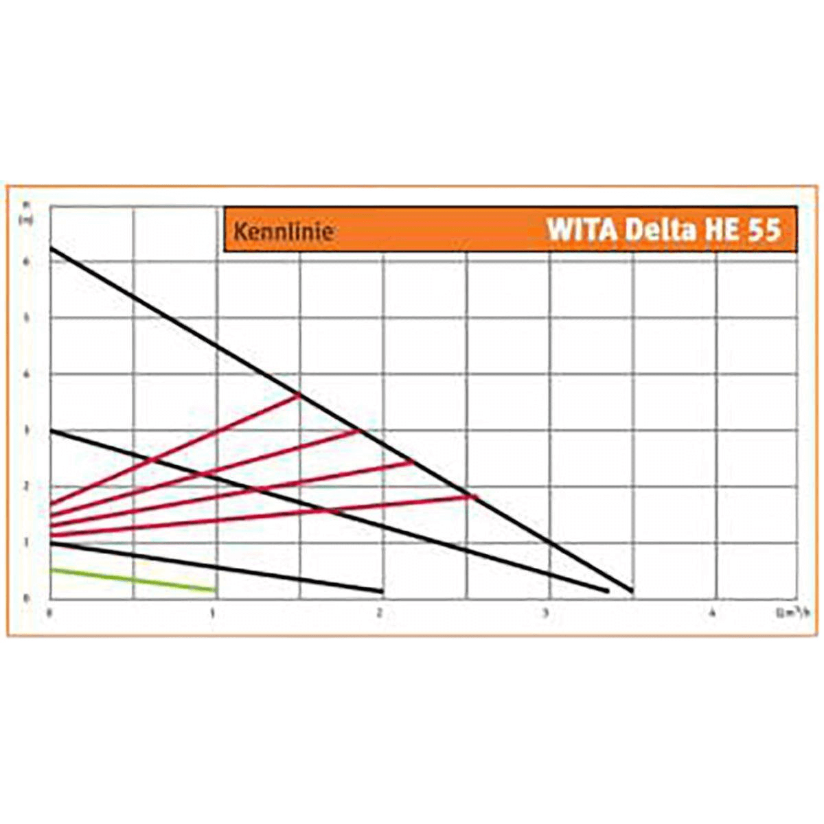 Ní hamháin go gcuireann an WITA Delta Plus HE 55-15 S iontas ort lena fheidhmiúlacht ach lena ghnéithe teicniúla chomh maith. Le ceann urscaoilte suas le 6 m agus ráta sreafa de 3.2 m³/u, comhlíonann sé fiú na riachtanais is déine. Ráthaíonn na luachanna seo cúrsaíocht chumhachtach i gcórais téimh agus gréine, beag beann ar mhéid do chórais.