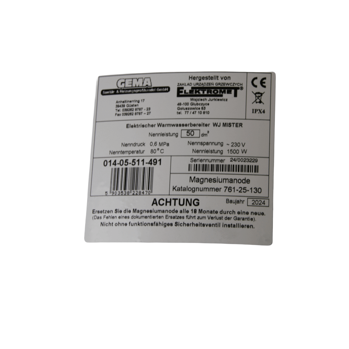 Un ánodo de magnesio proporciona protección adicional contra la corrosión de la caldera eléctrica.
