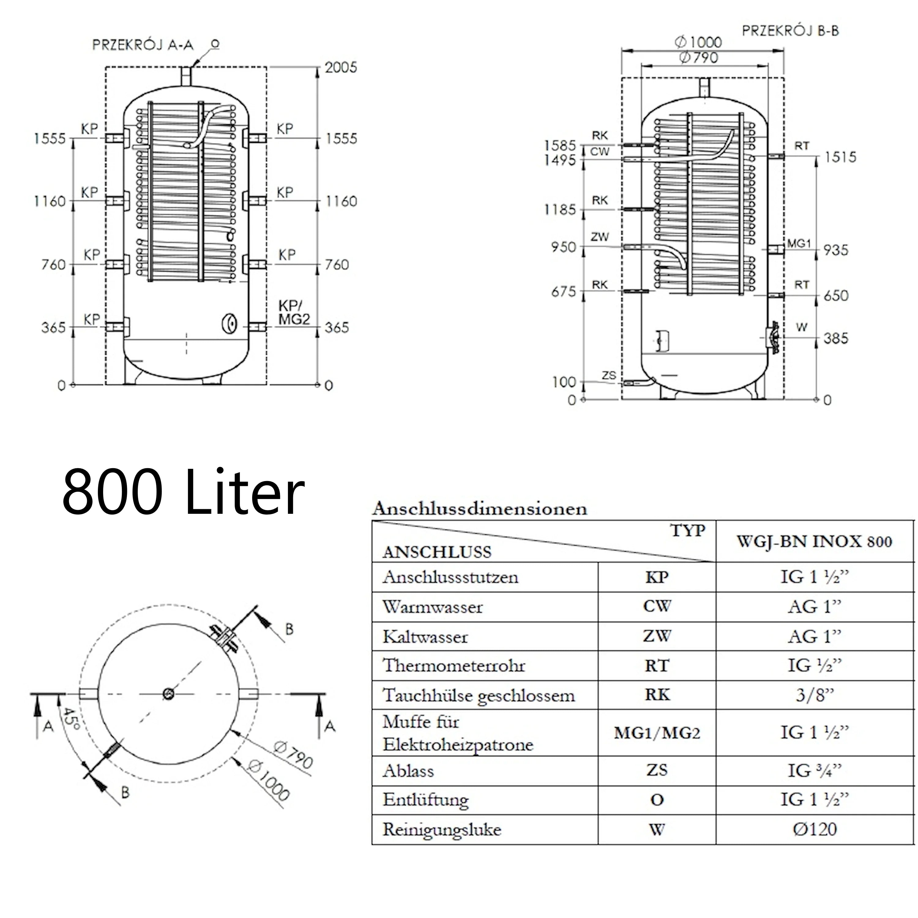 Küttevee puhverpaak koos sooja tarbevee soojendusega WGJ-BN INOX