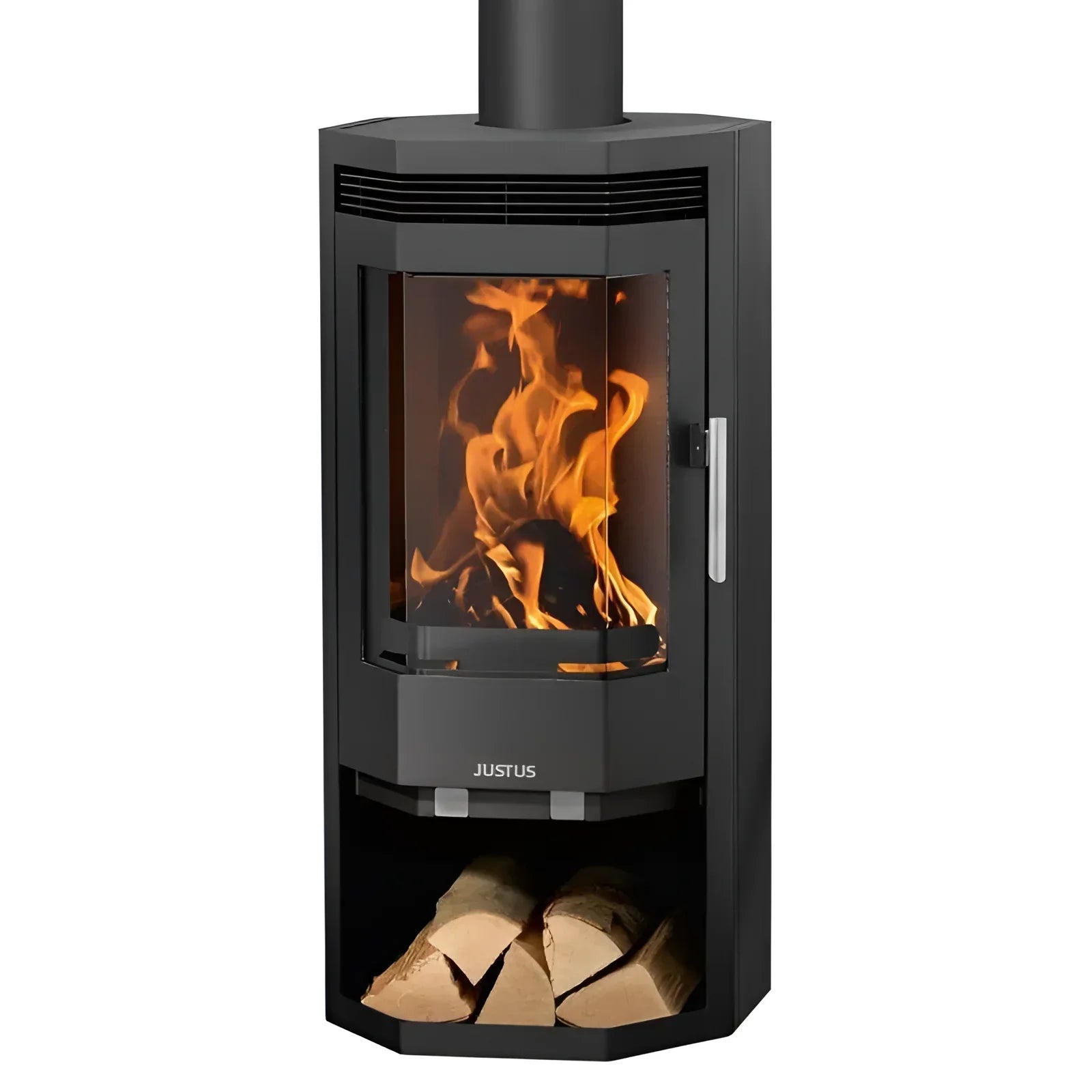 Kvaliteedi ja keskkonnasõbralikkuse eripärana disainis Justus kauni Justus Usedom 5 kamina nii, et seda saab kasutada 24 tundi. Kuna puit ei hoia oma sütt nii kaua põlemas kui kivisüsi, tuleb kütust regulaarselt lisada. Näpunäide: Kui soovite pidevalt põlevat ahju, vaadake Justus Usedom 5D-d.