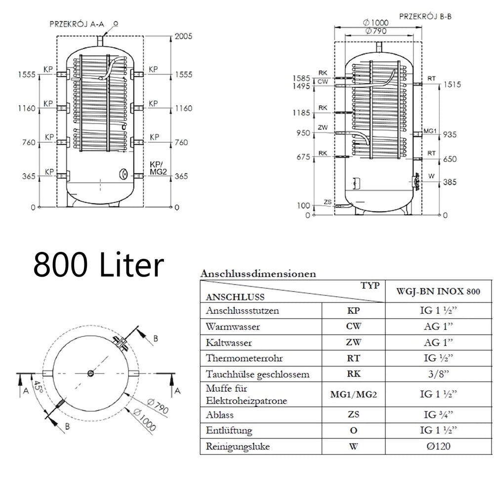 Comhcheanglaíonn an WGJ-BN INOX umar maolánach le haghaidh uisce a théamh le téitheoir uisce te tí comhtháite. Taobh istigh, feidhmíonn píopa rocach cruach dhosmálta mar mhalartóir teasa, ag soláthar dromchla teagmhála mór le haghaidh malartú teasa tapa agus éifeachtach agus ag cur ar chumas téamh uisce láithreach. Is é 0.3 MPa an brú oibriúcháin uasta atá ag an umar.