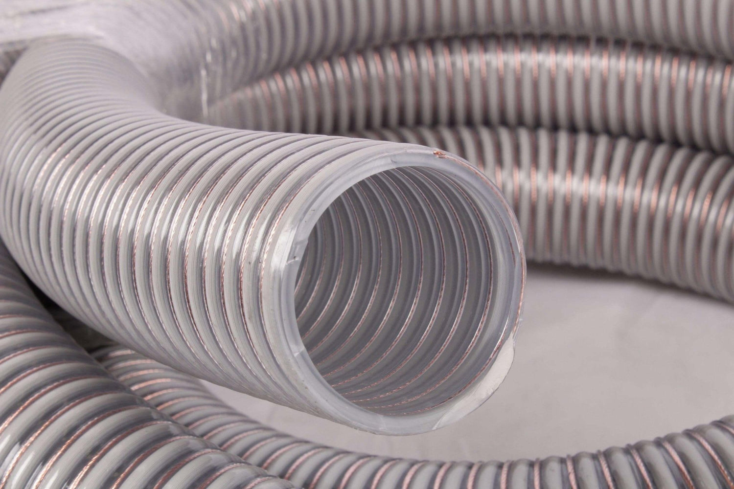 Tá an píobán frithstatach agus déanta as PVC le bíseach PVC righin leabaithe agus snáitheanna copair comhtháite. Tabhair aird ar leith ar an talamhú ar an dá thaobh.