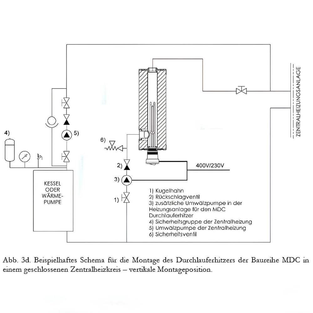 Scaldacqua istantaneo riscaldamento di emergenza MDC 400 più resistenza 3 kW
