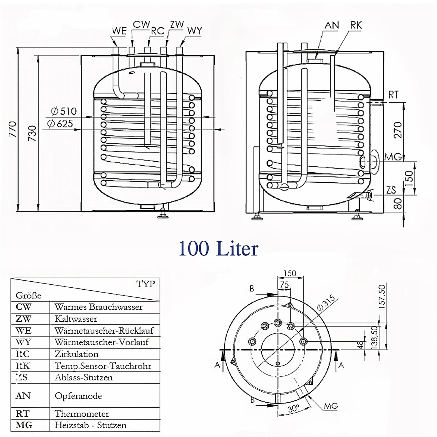 De Varmvattenberedare 100 l, 120 l eller 150 l med 1 värmeväxlare används för central och säker varmvattenuppvärmning.